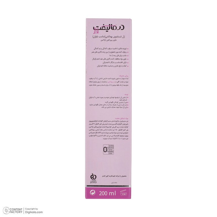 ابتدا دست ها را به خوبی بشویید. ناحیه خارجی تناسلی را با آب مرطوب نموده و مقدار کافی از ژل بهداشتی درمالیفت را روی موضع استفاده نمایید. بعد از یک دقیقه موضع را با آب ولرم شسته و سپس خشک نمایید.