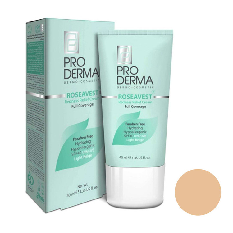 کرم پوشاننده رنگی پرودرما مدل Roseavest – حجم ۴۰ میلیلیتر – ضد قرمزی، مرطوبکننده و ضد آفتاب