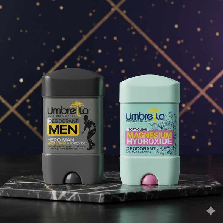 🌟 معرفی پک دوتایی دئودورانت جامد آمبرلا (Umbre La) پک دئودورانت جامد آمبرلا یک انتخاب هوشمندانه برای حفظ بهداشت و طراوت روزانه شما و شریک زندگیتان است. این مجموعه شامل دو دئودورانت مجزا با فرمولاسیون تخصصی برای پوست حساس ناحیه زیر بغل آقایان و بانوان است که هر دو بر پایه مواد طبیعی و ایمن مانند منیزیم هیدروکساید طراحی شدهاند. ✨ مزایای کلیدی محصول: فرمولاسیون سالم: کاملاً فاقد الکل، آلومینیوم، پارابن و تالک؛ مناسب برای پوستهای حساس و جلوگیری از آسیب به غدد لنفاوی. حفظ تعادل رطوبتی: تکنولوژی Moisture Balance آمبرلا به حفظ رطوبت طبیعی پوست زیر بغل کمک میکند. قدرت جذب بو: حاوی منیزیم هیدروکساید که یک ضد بوی طبیعی و قوی است و از ایجاد بوی نامطبوع جلوگیری میکند. ضد لک: عدم ایجاد لکههای سفید یا زرد روی لباسهای تیره و روشن. مشخصات دئودورانت Hero Man (مردانه - طوسی) ویژگی توضیحات کاربرد محافظت قوی و بادوام در برابر بوی بد مخصوص آقایان ترکیب فعال Magnesium Hydroxide سطح محافظت قوی و مناسب فعالیتهای روزمره و ورزشی رنگ طوسی مشخصات دئودورانت Soft + Clear (زنانه - سبز روشن) ویژگی توضیحات کاربرد محافظت ملایم، نرمکننده و شفافکننده پوست مخصوص بانوان ترکیب فعال Magnesium Hydroxide، Zinc PCA و ویتامینها مزیت ویژه فرمول Soft + Clear برای جلوگیری از تیرگی و حفظ شفافیت پوست زیر بغل رنگ سبز روشن نحوه استفاده: پس از دوش گرفتن یا تمیز کردن ناحیه زیر بغل، استیک را کمی بچرخانید و یک لایه نازک را مستقیماً روی پوست خشک زیر بغل بکشید.